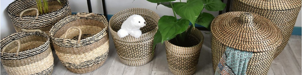 Ce panier tressé en herbier marin allie douceur par ses formes arrondies, charme et délicatesse avec son tressage élégant et ajouré.