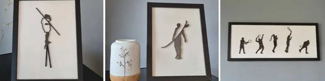Découpé dans du bois fin, ce surfeur puis poncé, peint en noir à l'aérographe pour une finition de qualité et mis sous cadre. Toutes ces étapes sont réalisées...
