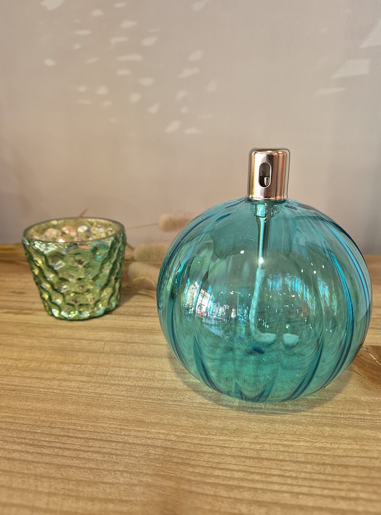 Son bleu lui donne beaucoup d'originalité et de charme malgré une forme assez classique. Cette lampe a huile allie modernité et classisme pour le plaisir des sens, visuels et olfactifs