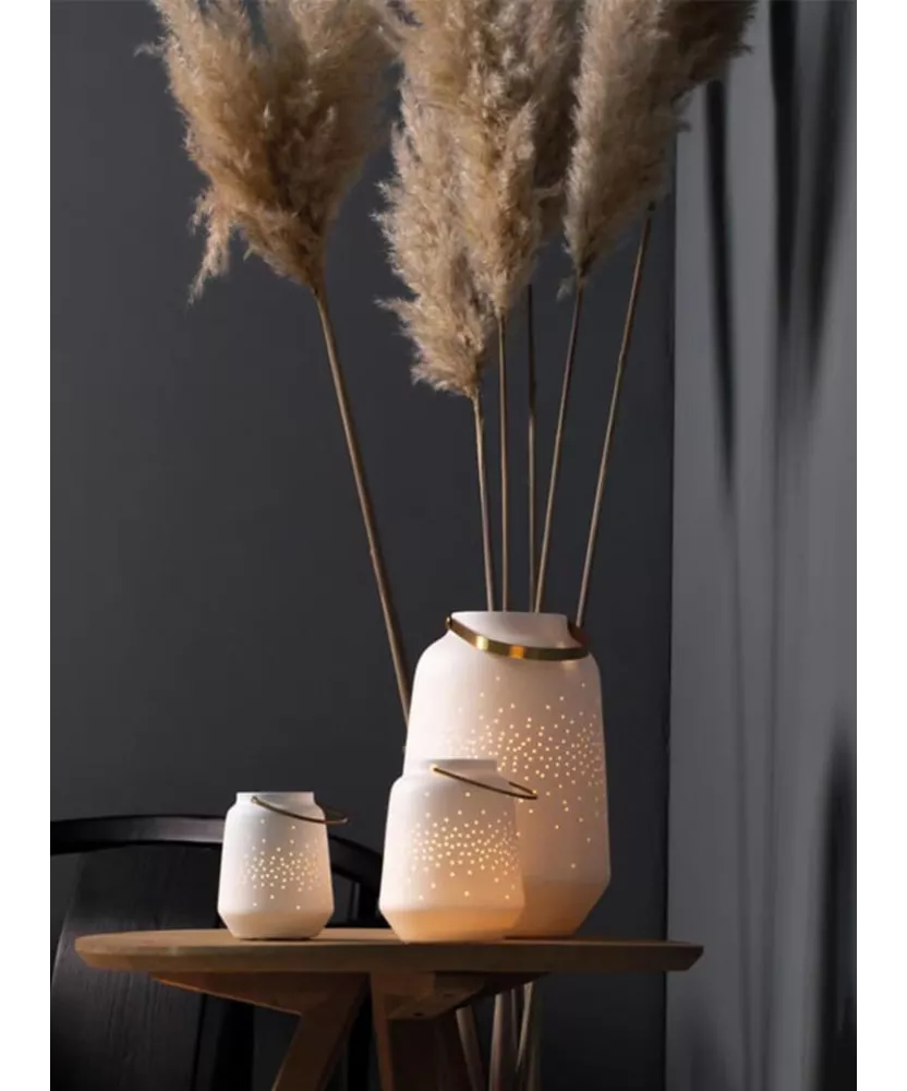 Ce petit photophore porcelaine en forme de lanterne est charmant et délicat.