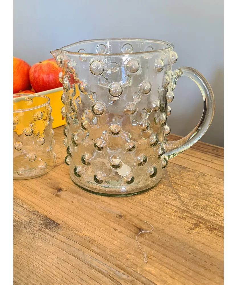 Originale et peu commune, cette carafe en verre vous servira tout au long de la journée. A table lors des repas, pour présenter vos jus de fruits lors des gouters et permettra de rafraîchir et désaltérer petits en grands cet été lorsque les températures monteront.