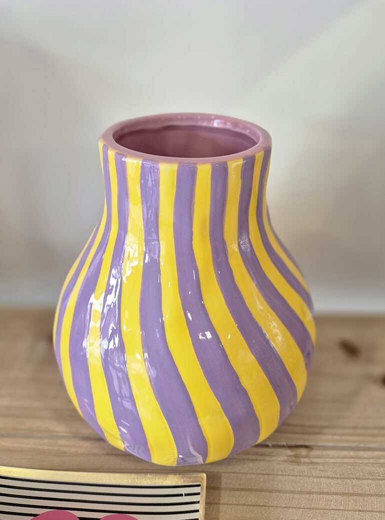 Ce vase rayé en céramique émaillée allie originalité par ses couleurs, et classicisme par sa forme. Une touche de gaité, de luminosité pour réveiller votre intérieur.